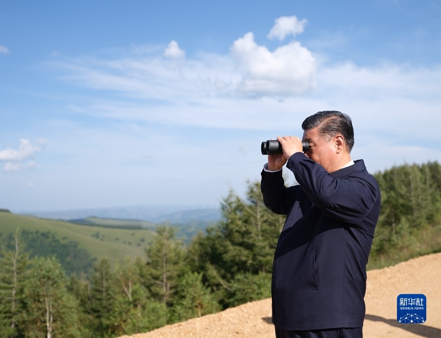這(zhè)是(shì)23日(rì)下(xià)午,習(xí)近(jìn)平在塞罕壩機(jī)械林(lín)場(chǎng)月(yuè)亮(liàng)山(shān)考察。
