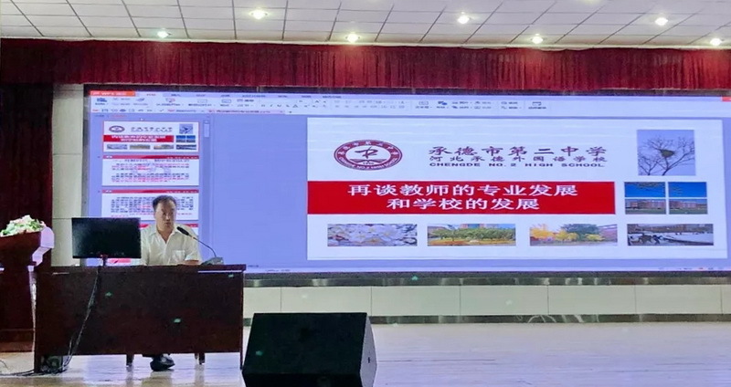 經過了(le)短(duǎn)暫、忙碌的(de)暑假,我們迎來(lái)了(le)新的(de)學期,為(wèi)了(le)使全校(xiào)教職工(gōng)不(bù) 忘初心、牢記使命,促進學校(xiào)教育教學工(gōng)作(zuò)盡快(kuài)步入新征程,8月®(yuè)17日(rì)上(shàng)午,承德二中在學校(xiào)報(bào)告廳隆重召開(kāi)2019-2020第一(yī)學期全體(tǐ)教職工(≥gōng)大(dà)會(huì)。會(huì)議(yì)由副校(xiào)長(cháng)馬欣慧主持。大(dà)會(huì)上(shàng),校(xiào)長(cháng)郭常森(sēn)為(wèi)全體(tǐ)教職工(gōng)做(zu'ò)了(le)"再談教師(shī)的(de)專業(yè)發展和(hé)學校(xiào)的(de)發展"的(de)專題報(bào)告。
