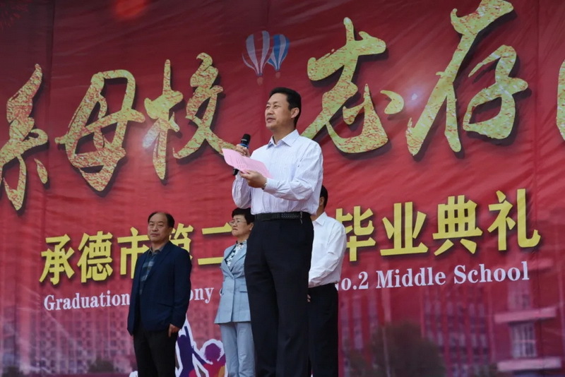 校(xiào)長(cháng)郭常森(sēn)代表承德二中對(duì)圓滿完成高(gāo)中學業(yè)的(de)每一(yī)位高(gāo)三學生(shēng)表示最熱(rè)烈的(de)祝∏賀,向辛勤工(gōng)作(zuò)的(de)老(lǎo)師(shī)們表示誠摯的(de)謝(xiè)意。