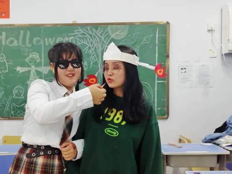 學生(shēng)們盡情地(dì)發揮想象力,Cosplay成自(zì)己喜愛(ài)的(de)動漫角色和(hé)各種精靈、鬼怪,以組為(wèi)單位模拟每家(jiā)每戶,進行(xíng)萬聖節最經典的(de)"不(bù)給糖就(jiδù)搗蛋"的(de)活動。每個(gè)學生(shēng)都(dōu)"滿載而歸",收獲的(de)不(bù)光(guāng)是(shì)一(yī)袋袋的(de)糖果♣,更是(shì)彼此之間(jiān)的(de)友(yǒu)誼。晚會(huì)還(hái)安排了(le)緊張激烈的(de)蒙眼貼南(nán)瓜梗比賽,感受文(wén)化(huà)的(de)同時(shí)學習(x×í)萬聖節相(xiàng)關知(zhī)識并且練習(xí)英語口語。