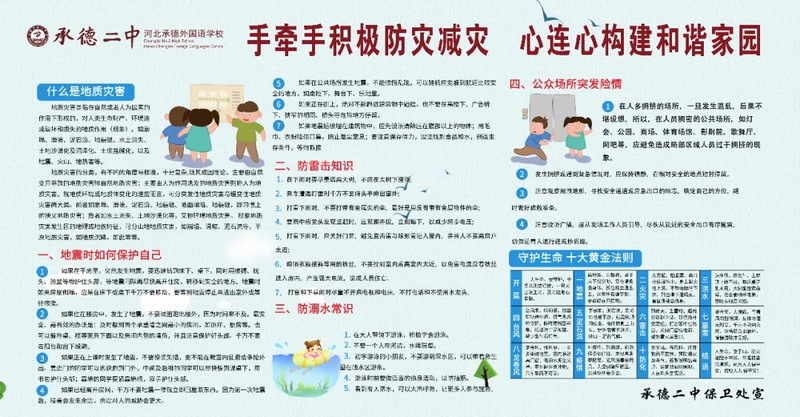 5月(yuè)10日(rì),我校(xiào)以保障廣大(dà)師(shī)生(shēng)的(de)生(shēng)命财産安全為(wèi)根本原則,以推廣普及防災減災知(€zhī)識,掌握自(zì)救互救技(jì)能(néng)為(wèi)重點,開(kāi)展"防災減災日(rì)"專題活動。