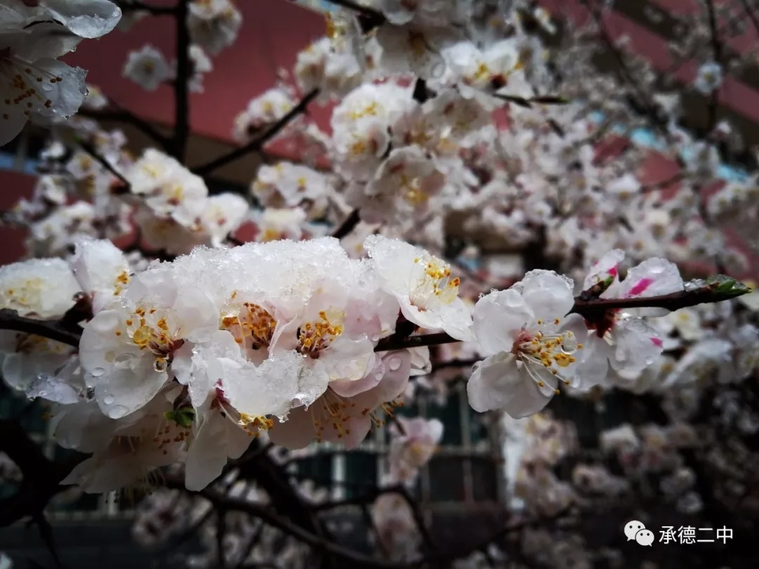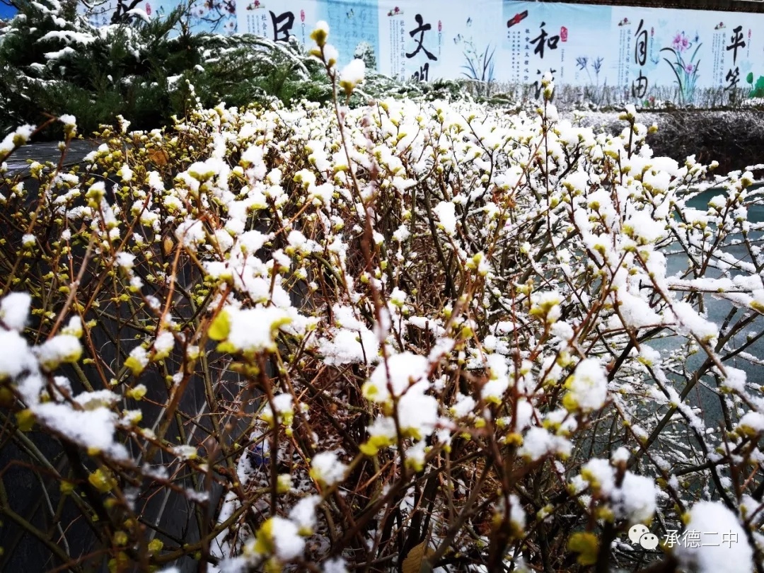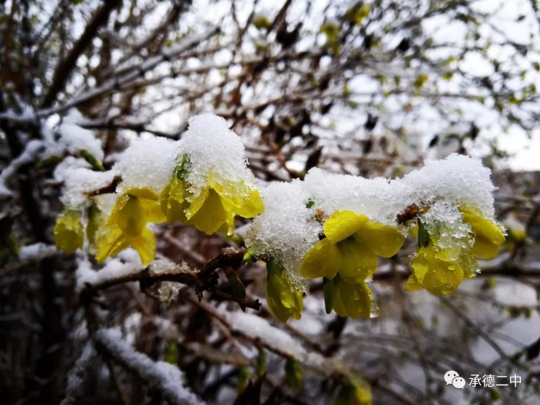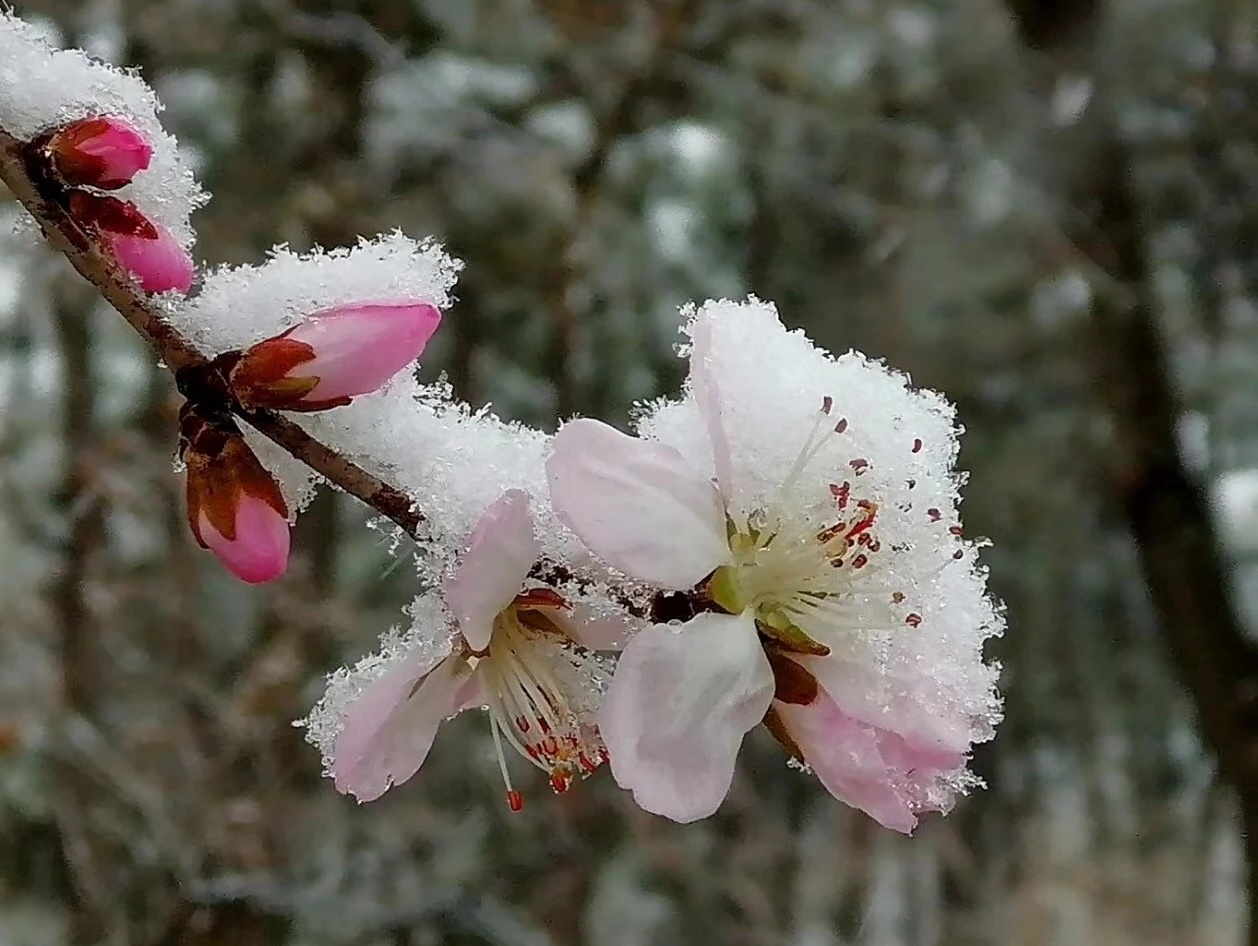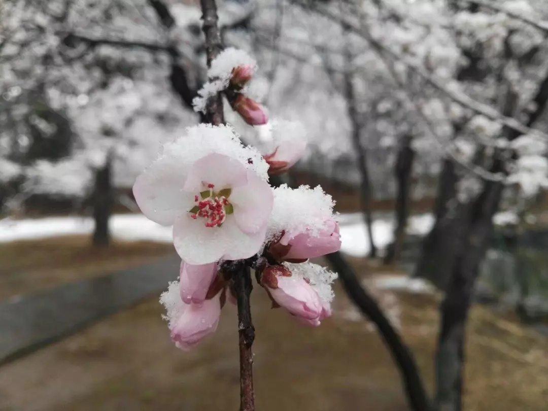 一(yī)場(chǎng)瑞雪(xuě)的(de)到(dào)來(lái),卻打亂了(le)春的(de≠)節奏,雪(xuě)壓枝頭,把盛開(kāi)的(de)花(huā)朵洗刷的(de)更加豔麗(lì)。