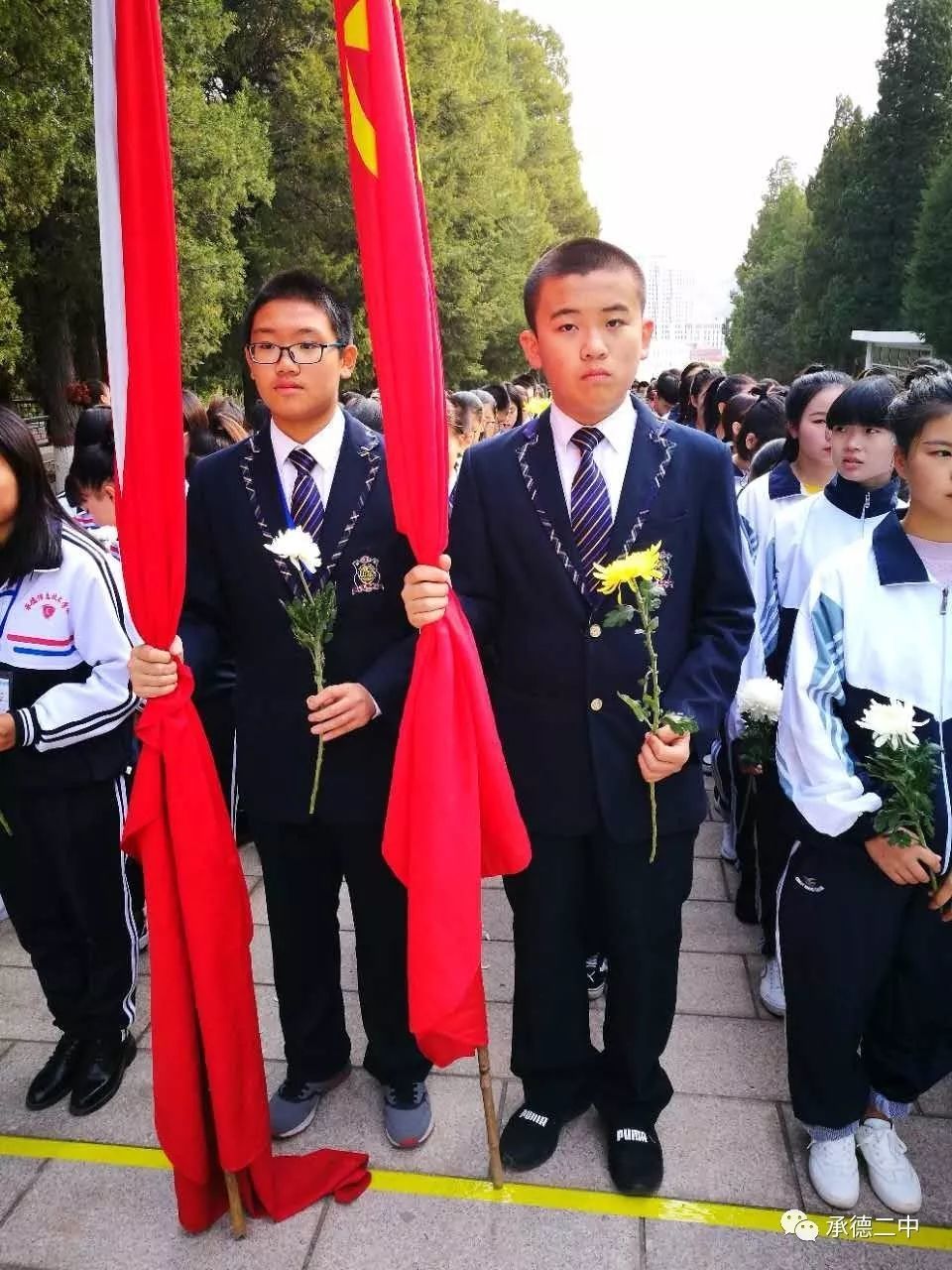 在我國(guó)第68個(gè)國(guó)慶節來(lái)臨之際,9月(yuè)30日(rì)上(shàng)午,承德二中初中部的(de)一(yī)百名師(shī)生(shēng)代表來(l↕ái)到(dào)了(le)莊嚴肅穆的(de)熱(rè)河(hé)革命烈士紀念館,參加市(shì)委市(shì)政府★組織的(de)“烈士紀念日(rì)”祭掃活動。