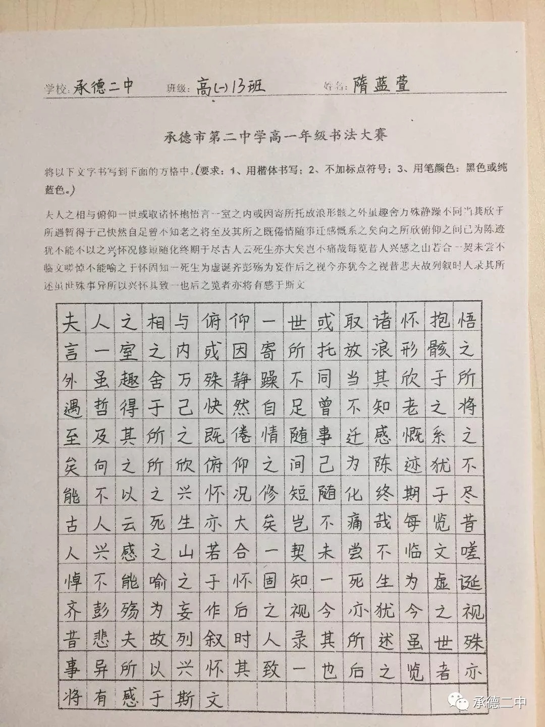 高(gāo)一(yī)年(nián)級舉辦學生(shēng)硬筆(bǐ)書(shū)法大(dà)賽