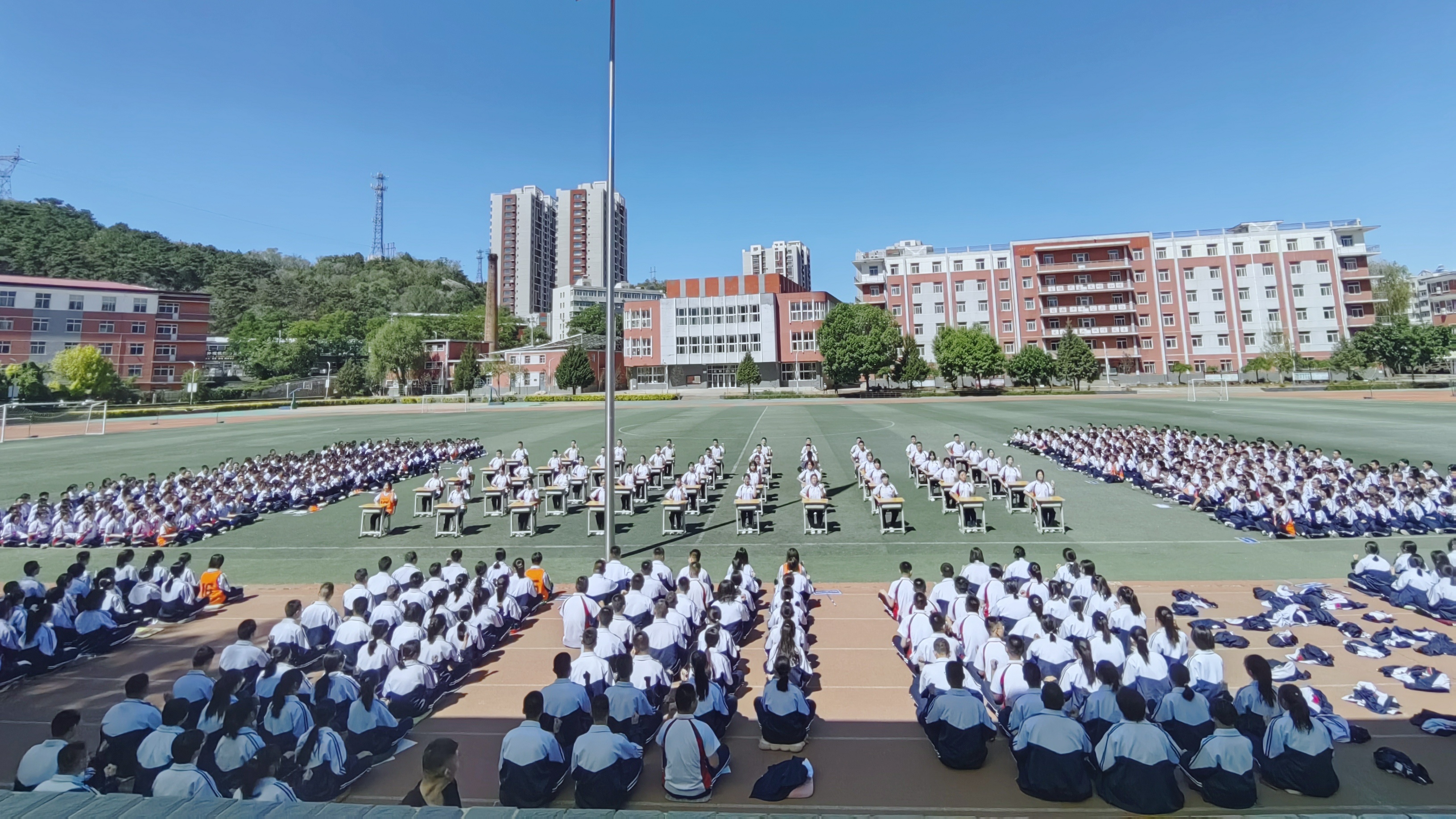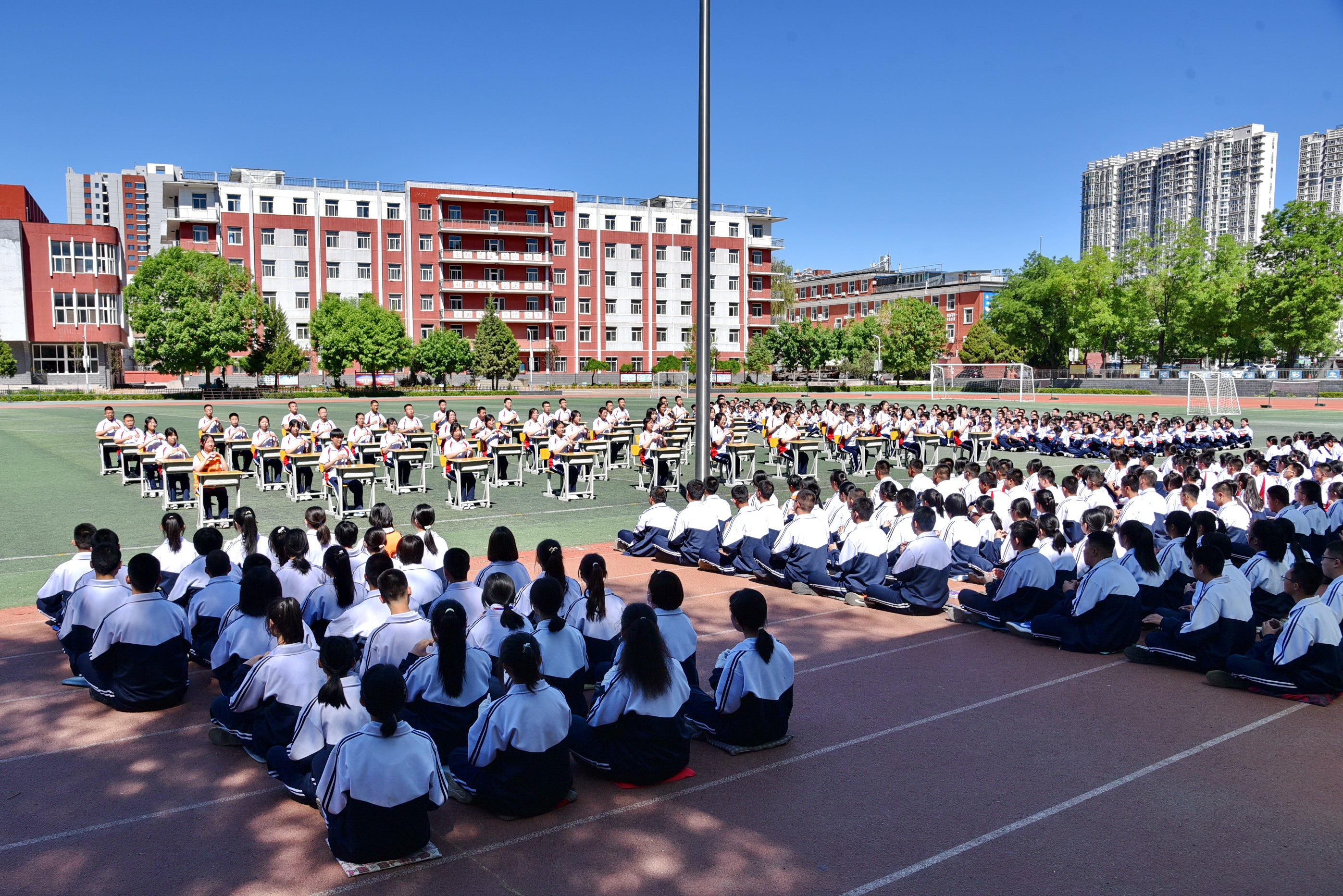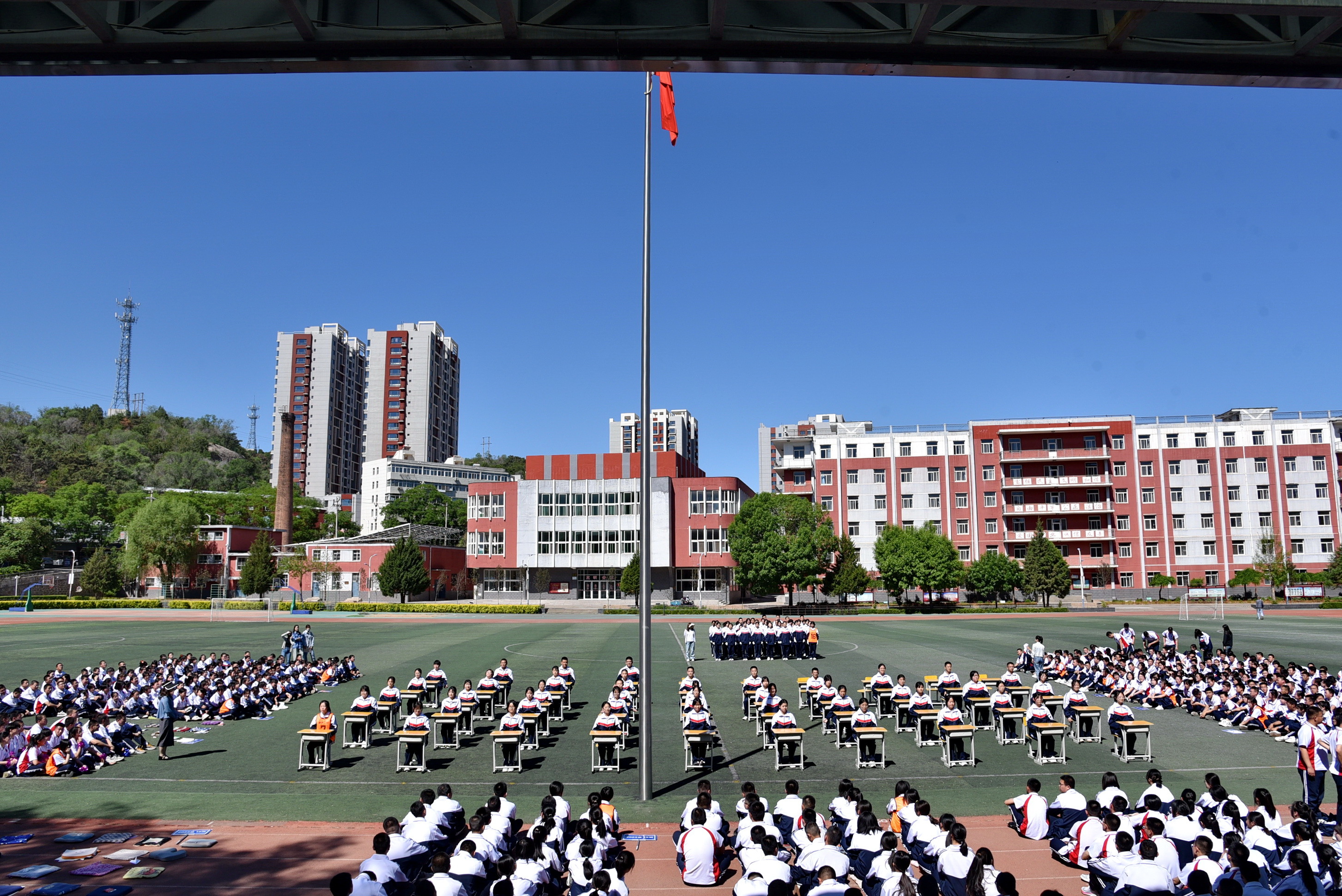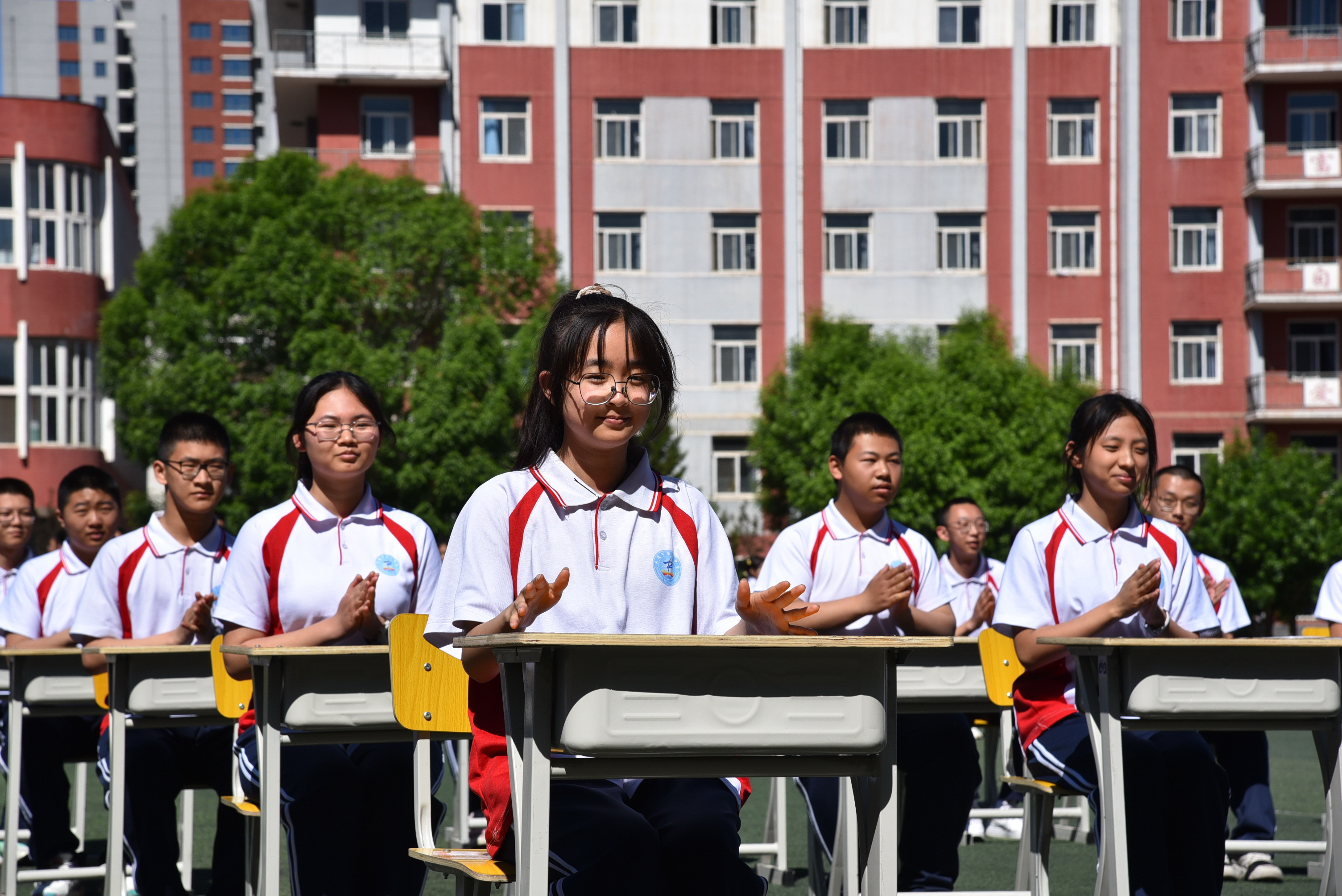 一(yī)道(dào)道(dào)弧線在指尖流動,一(yī)張張笑(xiào)臉在眉間(jiān)綻放(fàng)。課桌舞(wǔ)是(shì)同學們每天開(kāi)啓下(xià)午課的(de)“醒腦(nǎo)操”。伴随著(zhe)铿锵的(de)音(yīn)樂(yuè)響起來(lái),飛(fēi)揚的(de)青春便在方寸課桌間(jiān)舞(wǔ)動起來(lái)。同學們把課桌搬到(dào)操場(chǎng),盡情展示班級風(fēng)采,他(tā)們的(de)動作(zuò)整齊劃一(yī),精神飽滿昂揚,盡顯青春的(de)朝氣與活力。
