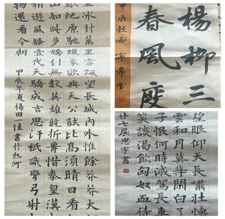 學生(shēng)作(zuò)品一(yī)筆(bǐ)一(yī)畫(huà)勾勒漢字之美(měi),一(yī)張一(yī)≈弛書(shū)寫端正人(rén)生(shēng)。橫平豎直,墨上(shàng)生(shēng)花(huā),書(shū)法社的(de)學生(shē ng)們用(yòng)獨特的(de)筆(bǐ)觸和(hé)墨香,訴說(shuō)著(zhe)對(duì)傳統文(wén)化(h uà)的(de)敬仰與傳承,展現(xiàn)著(zhe)他(tā)們對(duì)書(shū)法的(de)熱(rè)愛(ài)與追求。