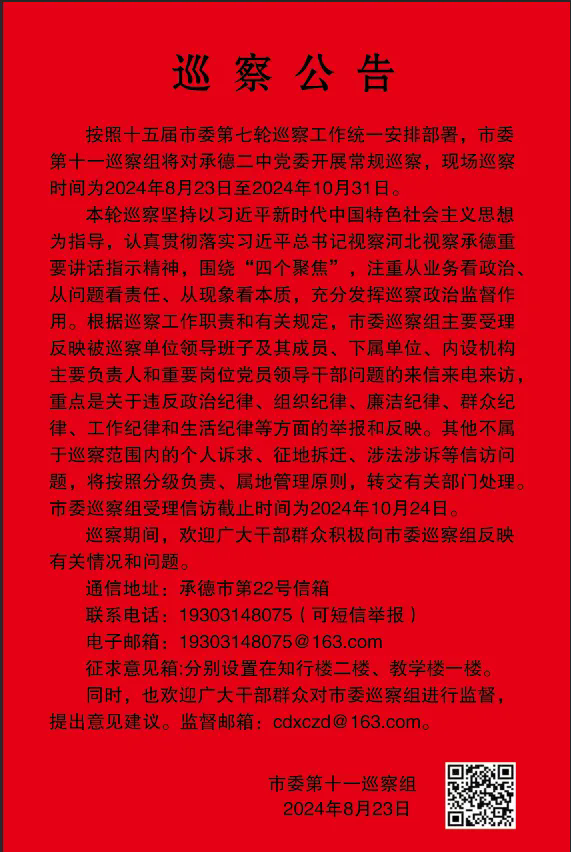 市(shì)委第十一(yī)巡察組進駐承德二中黨委開(kāi)展巡察工(gōng)作(zuò)