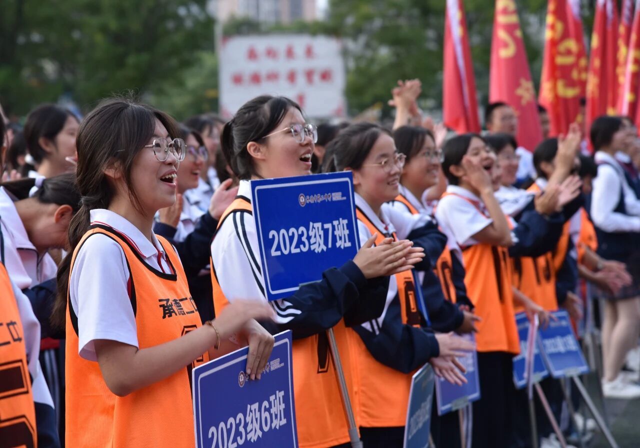 清晨的(de)陽光(guāng)灑滿跑道(dào),整個(gè)校(xià o)園洋溢著(zhe)青春的(de)氣息。伴随著(zhe)激昂的(de)運動員(yuán)進行(xíng)曲,各年(nián)級方陣精神抖擻地(dì)步入會(huì)場(chǎng)。飄揚的(de)班旗、整齊的(de)步伐、響亮(liàng)的(de)口号,展現(xiàn)著(zheΩ)二中學子(zǐ)特有(yǒu)的(de)精氣神。