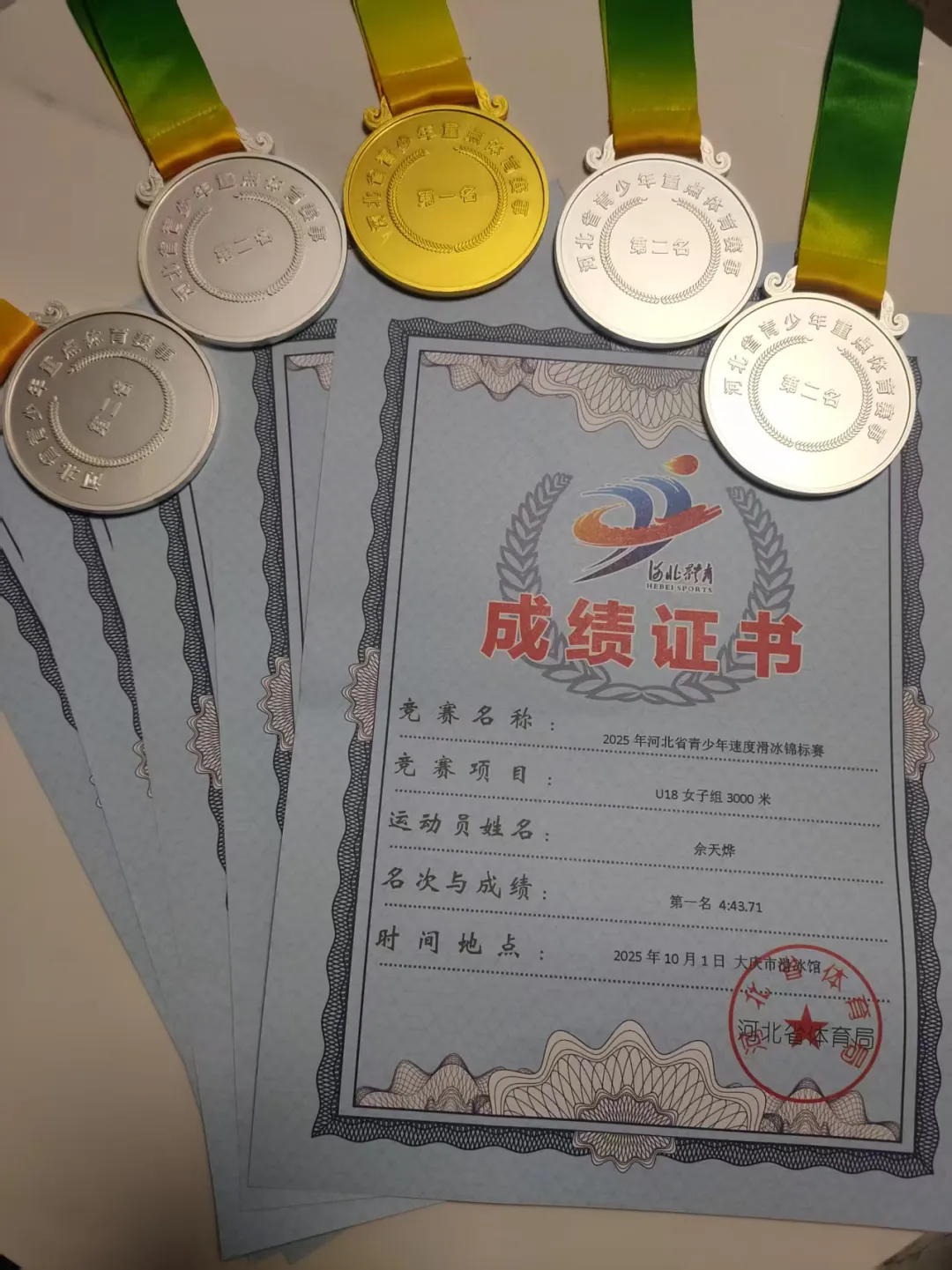 承德二中 | 翩若驚鴻 冰場(chǎng)奪魁--佘天烨同學在河(hé)北(běi)省青少(shǎo)年(nián)速度滑冰錦标賽中勇奪一(yī)金$(jīn)四銀(yín)
